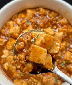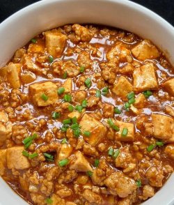 - 肉末炒至变色后加入豆腐,保持大火收汁,使豆腐嫩滑入味。