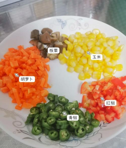 - 配菜如胡萝卜、青椒、火腿等需提前切丁备用。