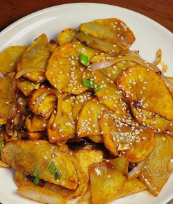 - 热锅凉油,先煸炒葱姜蒜末出香味。 - 加入土豆片翻炒至表面微黄,再倒入干豆腐继续翻炒。 - 加入生抽、老抽、盐、胡椒粉调味,翻炒均匀。 - 加适量清水烧开后转小火焖煮2-3分钟,使汤汁浓稠。 - 最后勾芡收汁,撒上葱花即可出锅。