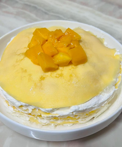 - 取面皮擀成薄片,包入芒果粒和山药泥,卷成卷状。 - 表面可撒上芒果片装饰,冷藏后切片食用。### 二、经典芒果千层蛋糕版