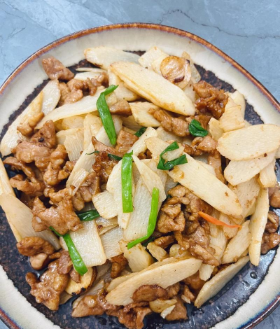 猪肉里脊150克(切片用淀粉、生抽腌制)