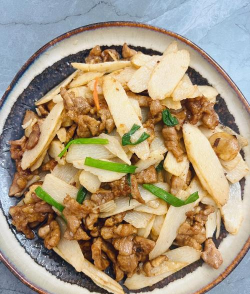 处理食材:山药切片焯水后过凉备用,肉片腌制10分钟,青椒/红椒切丝备用。2. 炒制过程:热锅冷油,先炒肉片至变色,加入姜蒜末爆香,再放入山药翻炒至软糯,最后加入青椒/红椒翻炒均匀,调味后出锅。