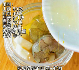山药处理: 蒸熟后碾成泥时稍微冷却,再与虾仁混合,可增加口感。 过敏提示