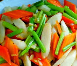 :去皮切片或切条,用清水浸泡并滴入白醋防止氧化变黑。 - 芹菜处理:摘去叶子,斜刀切段,焯水后过凉保持脆嫩口感。炒制过程- 热锅凉油,爆香葱姜蒜末和干辣椒段(可选)。 - 加入腌制好的鸡肉丁,中火翻炒至变色后盛出备用。 - 锅中再加油,放入山药片或条翻炒2-3分钟。 - 加入芹菜段大火翻炒1-2分钟,使其断生但仍保持脆嫩。 - 倒入炒过的鸡肉丁,调入生抽、老抽、盐、糖、醋,翻炒均匀。 - 最后淋入水淀粉勾芡,翻炒至汤汁浓稠即可出锅。