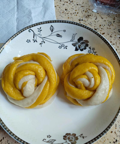 分剂子:将发酵好的面团分成8-12个面剂子,揉圆备用。- 包馅:取面剂子擀成薄圆片,放上山药泥或南瓜泥馅料,对折包成半月形或花卷状。#### 4. 二次发酵与蒸制