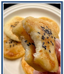 - 烤箱预热至150℃,将面饼放入烤盘,刷上一层薄油或蛋液,撒上芝麻。