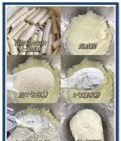 - 将蒸熟的山药捣成泥状,加入糖、鸡蛋、酵母和植物油,搅拌均匀。