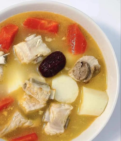 四、成品特点此汤品结合了排骨的鲜嫩、山药的健脾、胡萝卜的清甜和笋子的脆爽,营养丰富且易消化,适合冬季滋补或日常食用。