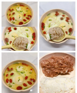 - 蒸6-8分钟后,用筷子轻扎蛋液中心,若无生硬感即表示凝固。