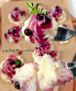 - 蒸熟后淋上自制的蓝莓酱,口感丰富。