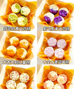 蒸熟材料:山药与红枣/紫薯切块蒸熟,压成泥状混合。2. 调味与成型:加入炼乳或豆沙馅,揉成面团后分成小块,压成圆饼状。3. 脱模与装饰:刷油脱模,表面撒上椰蓉或蔓越莓干,冷藏后切块食用。
