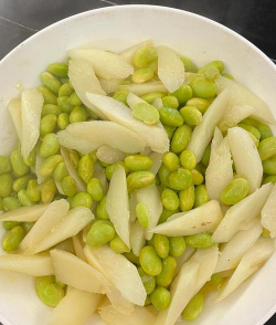 - 毛豆洗净后焯水1分钟,捞出过凉备用。