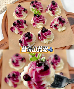 :细腻滑润,适合作为甜品或辅食。 材料 铁棍山药 1根 新鲜蓝莓 适量 蓝莓酱 2勺 雀巢炼乳 适量 蜂蜜 少量 步骤