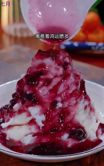 蓝莓酱加少量蜂蜜稀释,淋在山药泥上。
