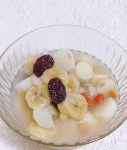 - 放入香蕉片和红枣(可选),再煮5分钟即可