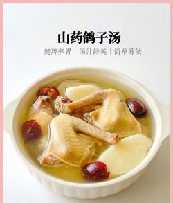 四、营养与功效滋补作用: 山药补脾养胃,鸽子肉补气强身,两者搭配可提升免疫力