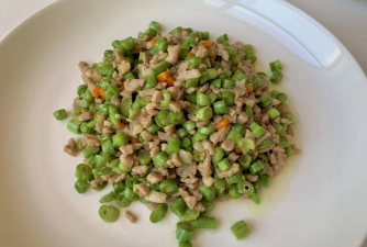 - 放入冷水锅中,加入1片姜和1勺料酒,大火煮开后撇去浮沫,焯水1-2分钟捞出,沥干水分备用。