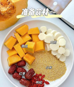 - 先煮糯米至半熟,加入山药、南瓜丁;