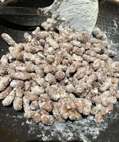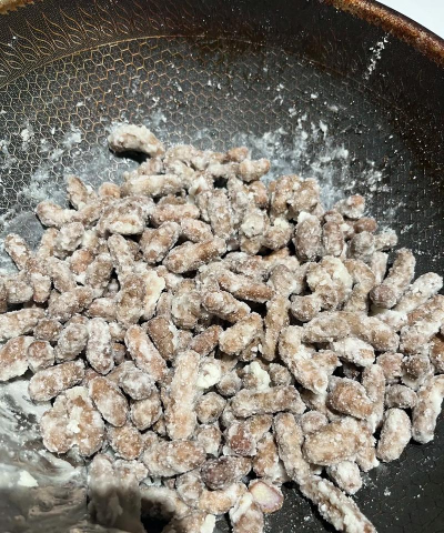 - 选用纯度高的白砂糖,小火慢熬至糖浆出现密集小泡泡并呈深琥珀色,关火后继续翻炒形成糖霜。