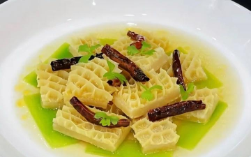 此道菜通过鲍汁的鲜味渗透和山药与牛筋的软糯口感,形成独特风味,适合作为会所特色菜或宴请菜品。
