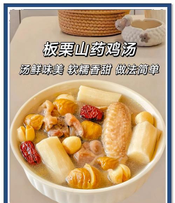 板栗山药鸡汤是一种营养丰富的滋补汤品,适合秋冬季节饮用。以下是几种常见的做法及要点: