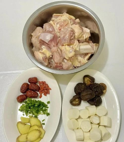 辅料:山药1根(约200克,建议选择铁棍山药或散养鸡更佳)、红枣5-6颗、枸杞10克、姜片3-4片、葱段2根、料酒2勺、盐适量、胡椒粉少许