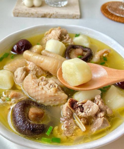 - 土鸡切块焯水去血沫,山药去皮切厚片,浸泡防止氧化。