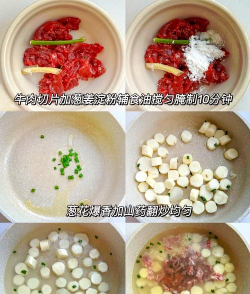 二、制作步骤牛肉预处理- 牛肉切块(建议逆纹切薄片或块状),用冷水浸泡30分钟以上,期间换水2-3次,去除血水和腥味