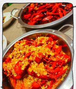 - 龙虾裹酱汁后放入烤箱200°C烤12-15分钟。
