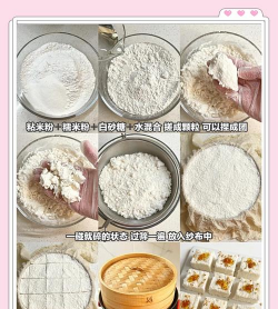 原料准备:将黄米淘洗干净,沥干水分备用。若使用糜子,需提前浸泡2-3小时。2. 分粉与吸水:把黄米铺在席子上阴干,使其充分吸水膨胀(约1小时)。然后研磨成细粉,过筛去除杂质。3. 蒸制:取蒸笼铺上湿布,倒入黄米粉,均匀铺开。上锅蒸约1.5-2小时,直到用筷子能轻易穿透。4. 调味与成型:蒸熟后取出放凉,可加入糖粉或芝麻粉调味。冷却后切成块状或圆形。 二、云南云片糕(无粉版)