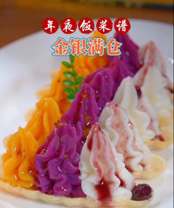 1. 红薯、紫薯蒸15分钟至软烂,压成泥状;