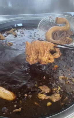 3. 用小火慢慢炖煮数小时,直到牛下水熟透入味。