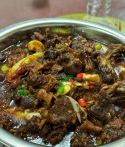 选材: 湖南本地多用野狗肉或土狗肉,肉质紧实,适合长时间炖煮。- 调料