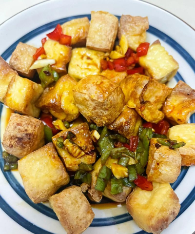 - 若使用北豆腐,可裹淀粉后煎制更酥脆。4. 浇汁翻炒