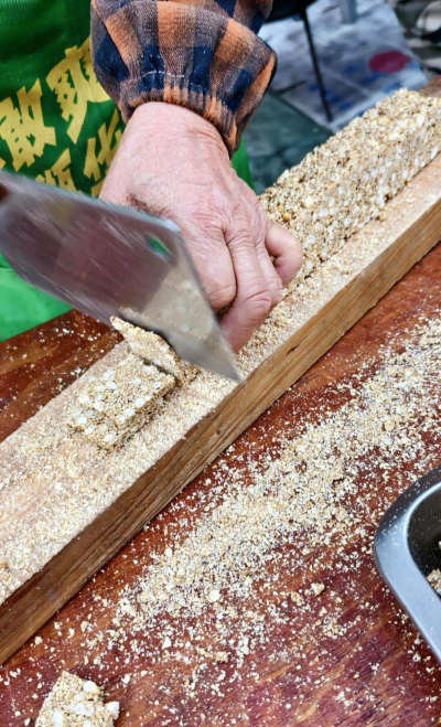 熬糖- 将白砂糖、饴糖混合后熬煮至140-150℃(用筷子测试),冷却后备用。