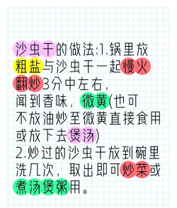 粉丝葱段炒沙虫:沙虫与粉丝、豆腐一起翻炒,加入蚝油、椒盐提鲜。- 酸辣沙虫:沙虫与酸菜、辣椒同炒,注意火候避免过熟。以上做法可根据口味调整配料,沙虫的鲜味能提升整道菜的风味。