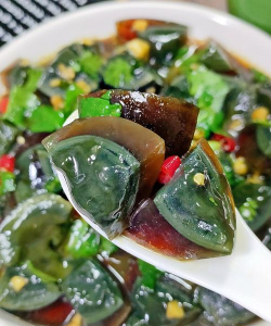 切蛋技巧:用湿刀切皮蛋可减少粘连,保持皮蛋完整。2. 调料平衡:酸甜辣咸要协调,根据口味调整生抽、醋、辣椒的比例。3. 风味拓展:可加入芝麻、香菜、枸杞等提香增色。通过以上方法,可灵活搭配出咸香、酸辣、微甜等多种风味的皮蛋汁,搭配米饭或凉菜食用更佳。