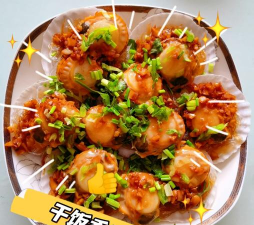 处理扇贝:去壳后挑出内脏,用料酒腌制10分钟。2. 准备粉丝:粉丝泡软后铺在扇贝底部,卷起固定。3. 调制蒜蓉酱:蒜末炒至金黄,加入生抽、蚝油,翻炒均匀。4. 烤制:烤箱预热200℃,将扇贝放入烤5分钟,期间可刷一次蒜蓉酱。5. 点缀:出锅后撒上葱花即可。