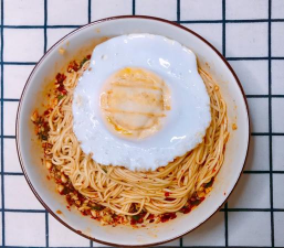 酱油火腿拌面:搭配煎蛋或火腿片,酱汁用酱油、黑胡椒粉调味。
