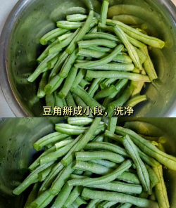 焯水豌豆角洗净后焯水1-2分钟,捞出过凉。2. 浸泡: