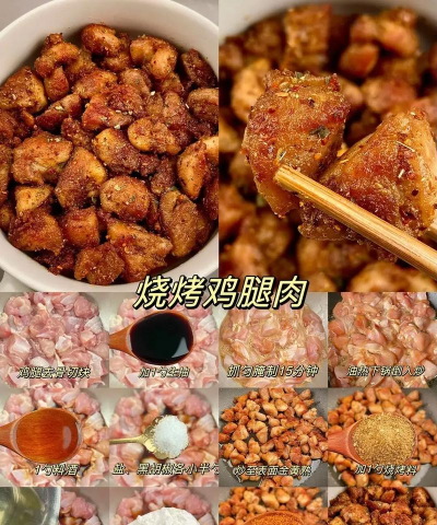 1. 鸡肉腌制(盐、料酒、生抽、黑胡椒粉)15分钟;