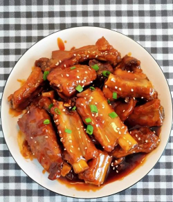 - 煎排骨:热锅凉油,将排骨两面煎至微黄,加入老抽翻炒上色,使肉质更香脆