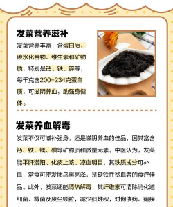 发菜处理:需多次清洗,建议用流水浸泡+手挤或毛巾擦干,避免破裂。2. 搭配食材:与肉类、蛋类、蔬菜搭配可提升营养和口感。3. 调味原则:发菜本身鲜味浓郁,调味时不宜过咸,以提鲜为主。通过以上方法,可灵活运用发菜制作多样菜品,既保留其独特风味,又兼顾营养均衡。