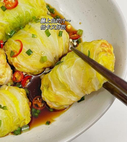 - 可淋上蒸鱼豉油或红油提鲜。 二、福袋白菜(蒸菜版)