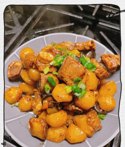 :软烂脱骨,汤汁鲜美,搭配丰富 材料 排骨 500g 土豆 2个(切块) 葱姜蒜末 适量 八角 1颗 桂皮 1小段 生抽 2大勺 老抽 1大勺 考抽 1小勺 料酒 2勺 冰糖 15g 盐 适量 步骤