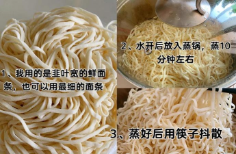 - 面条煮至八分熟后捞出,过凉后沥干水分备用。