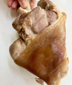 - 猪蹄切块,冷水下锅加料酒焯水5分钟,捞出过凉。 - 用刀背拍打猪皮,使其更易入味。2. 炒制基础:
