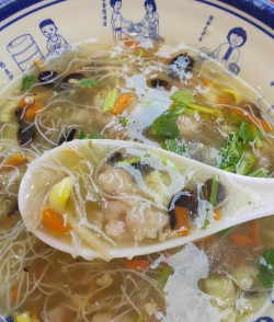 - 青菜(如豆芽、菠菜)焯水后与米线混合,加入蒜末、生抽、醋翻炒,最后淋上高汤