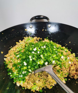 - 白菜切碎挤水,豆腐切丁炒至表面微焦,与白菜混合后加香菇、盐、酱油调味。