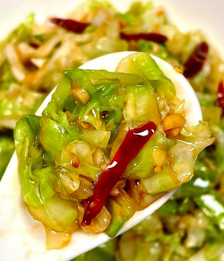 材料:白菜1颗(半颗可选)、干辣椒3-4个、白醋2汤匙、蒜末、生抽1汤匙、白糖1/2茶匙、盐适量、花椒20粒。